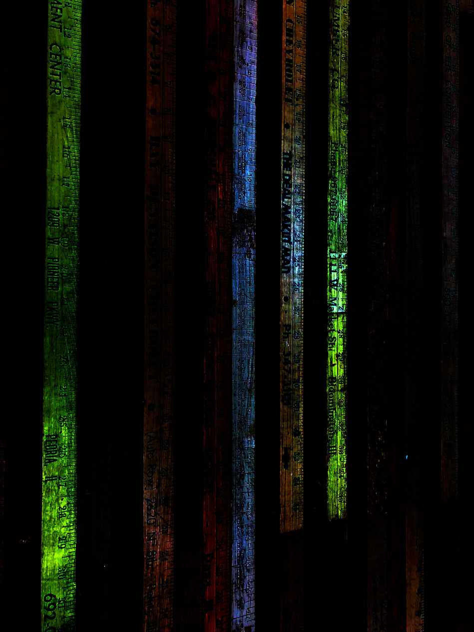Musings on Time and Measure in a digital medium. The clock, broken and beat in to submission, the stopping of time, the notion that there is no such thing as the passing of time. Inkjet on archival paper, shipped in a tube. Antique promotional yardsticks, glued down to make a countertop, their function changed entirely. Most of these are available as small, medium, or large prints in the shop page of the website.